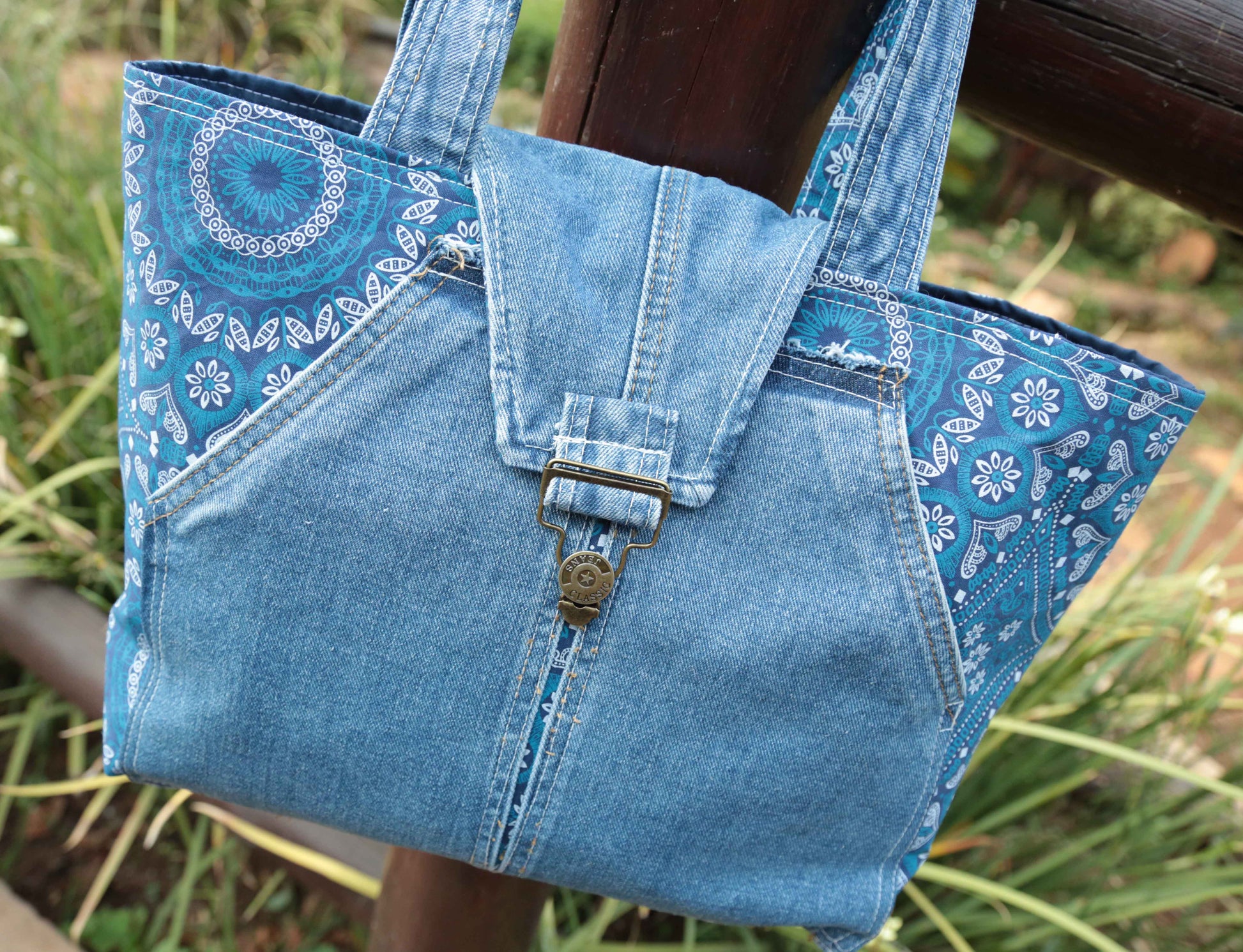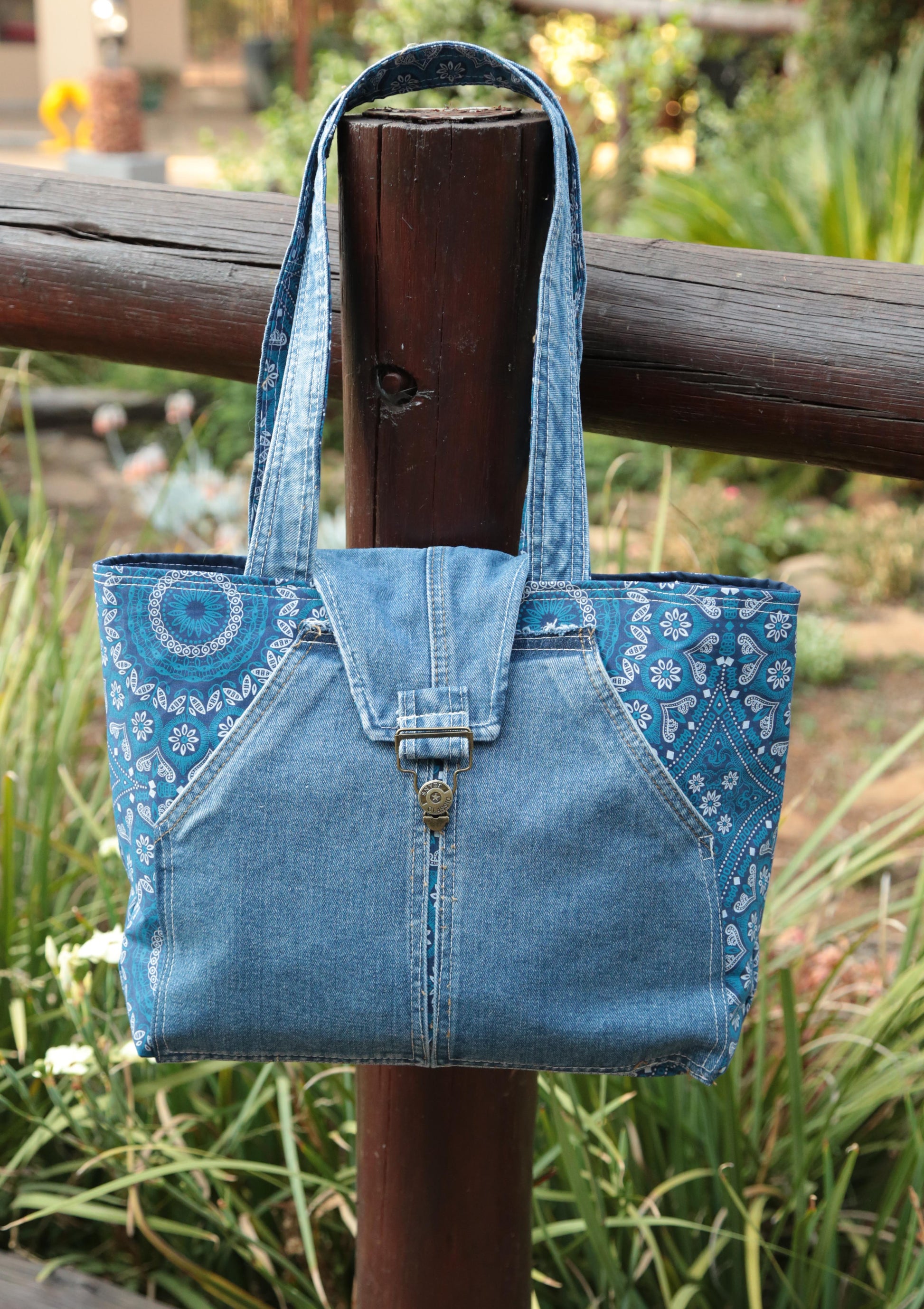 Enhance your daily wardrobe with this expertly crafted denim handbag, merging functionality with striking style.